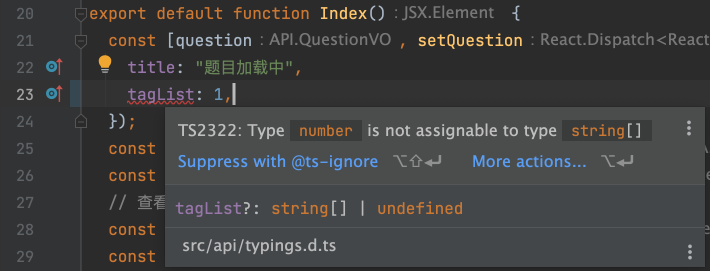 现在的很多项目都使用了 TypeScript 来校验项目的变量类型,使项目开发更规范。不熟悉前端的同学,可能经常在编辑器中看到类型错误,但这个库本身不会影响项目的运行,所以按照编辑器的提示修改即可,或者直接忽略。