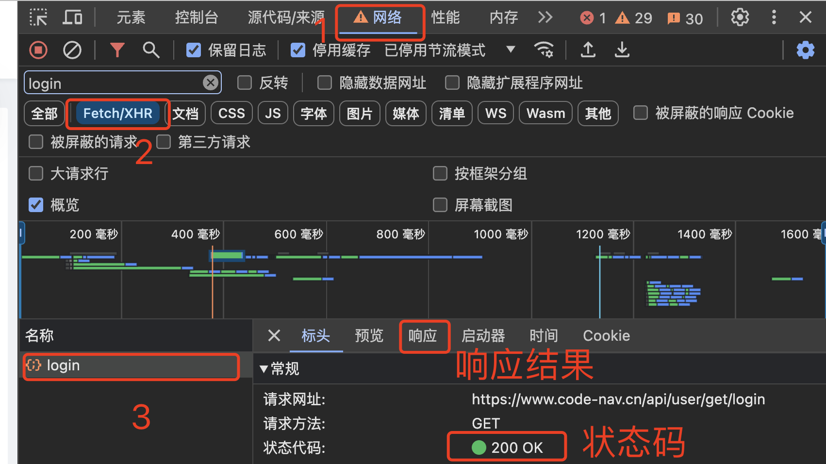 正常情况下,后端返回的状态码应该是 200 OK(或者其他 2 开头的状态码),表示正常响应。这个时候,再去看响应的数据是否符合预期: